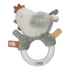 Esta doce galinha, com pêlo macio e um ar encantador, convida o bebé a agarrar, abanar e explorar! Vem com uma argola transparente com 3 bolinhas que fazem um som suave sempre que a roca se mexe.