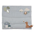 Mergulhe na magia dos Amigos da Floresta neste adorável tapete azul. Há muito para descobrir e ver! Parta numa aventura para encontrar as folhas enrugadas e as nuvens macias, conheça a adorável raposa macia e brinque com a coruja e o pequeno escaravelho. Há também um pequeno espelho para auto-exploração e um anel transparente com três pequenas contas que fazem barulho ao mover-se. Este tapete acolchoado para parque estimula de forma divertida os sentidos do seu filho com as suas diferentes texturas e atividades.