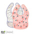 O fecho com velcro na parte de trás permite que sejam postos e retirados em segundos, facilitando a rotina dos pais e garantindo que o babete fique bem ajustado.