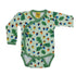 Com mangas compridas e acabamento em verde, Ă© feito em 100% algodĂŁo orgĂąnico certificado GOTS, suave para a pele sensĂvel dos bebĂ©s e amigo do ambiente.