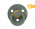 As chupetas BIBS Colour possuem uma estrutura redonda, simples e  minimalista, e uma tetina com forma redonda que imita o formato do mamilo da mãe.