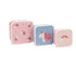 Conjunto de 3 lancheiras para alimentos. Perfeitas para levar para a escola, para a praia ou em passeios. Permitem armazenar de forma segura bolachas, sanduíches, fruta, queijo, ovos e muitos outros snacks.