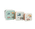 Conjunto de 3 lancheiras para alimentos. Perfeitas para levar para a escola, para a praia ou em passeios. Permitem armazenar de forma segura bolachas, sanduíches, fruta, queijo, ovos e muitos outros snacks.