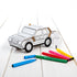 Carro da polícia em cartão e figura para montar e pintar + 6 canetas.