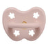 As chupetas Hevea são feitas totalmente a partir de produtos vegetais: 100% borracha natural e coloridas com pigmentos naturais.